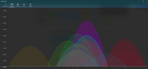 Now to get some hands-on experience before we continue on with Wi-Fi Theory Part 1. Well there are some useful applications out there that you can use to see this information for yourself. This is not a sponsor nor am I affliated with these companies or products in anyway. The first application I recommend to people for Windows is the Wi-Fi Analyzer app for people who just want to see how their Wi-Fi network looks in comparison to their neighbors Wi-Fi or potential interference your network. The paid version gives you upgrades to better visualize these overlapping channels and from there you can manually change your Access Point (AP) settings to choose a less congested channel. It's a one time charge of $9.99 to upgrade, which I guess is not too bad and beats most subscription based platforms. Now I have a screenshot below of the application but keep in mind that your Network Interface Card (NIC) must be compliant with the given spectrum you are looking at. For example, if I am using a NIC that does not support Wi-Fi 6 or better I cannot look at the 6GHz band.