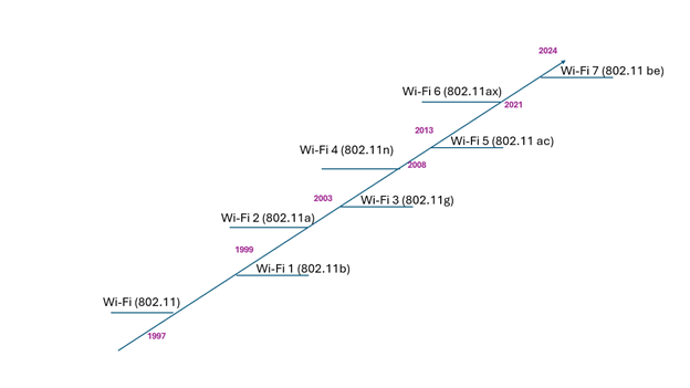 Below are the associated and released 802.11 technologies and their associated Wi-Fi generation names: